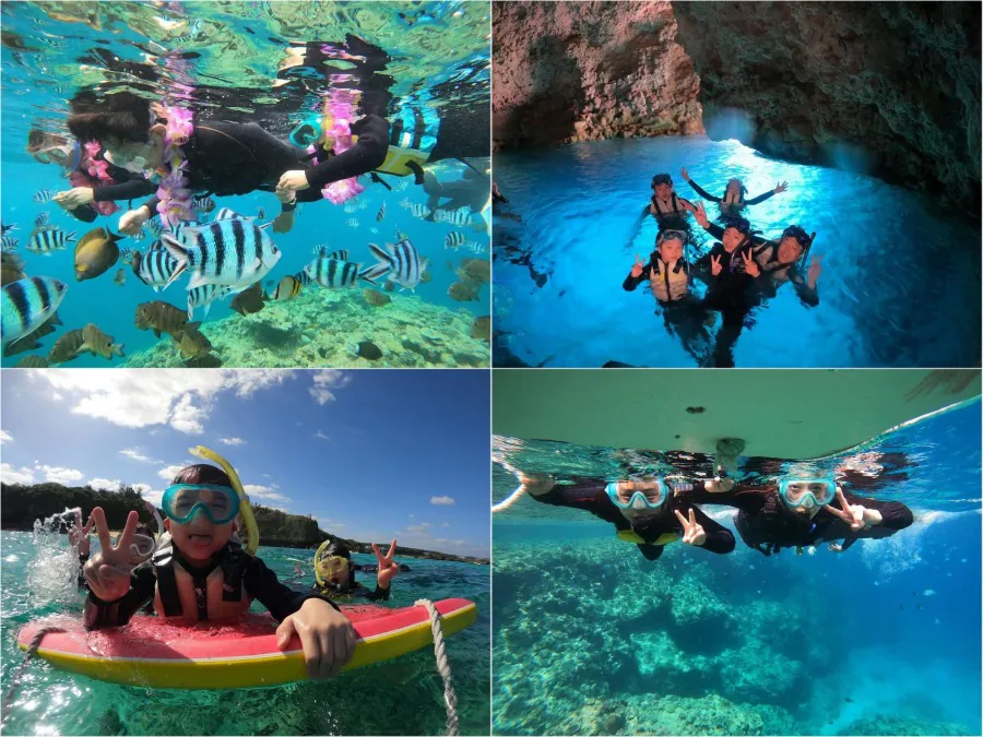 【沖縄恩納村/約2.5時間】1歳〜子供向け青の洞窟シュノーケリングツアー!泳げなくても1組貸切だから安心安全《エサやり体験付き/写真&動画無料》当日予約OK(No.4)