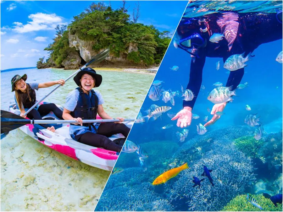 【沖縄本島・恩納村/1組貸切】専属ガイド付き☆シーカヤック&南国ホワイトビーチで熱帯魚シュノーケリングツアー《当日予約OK!2歳から参加可能》(No.86)