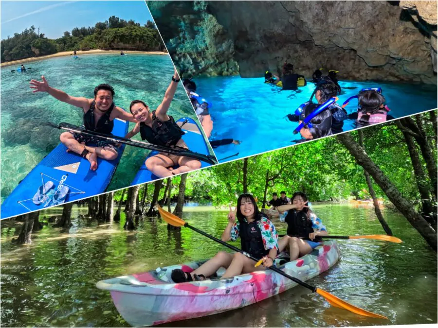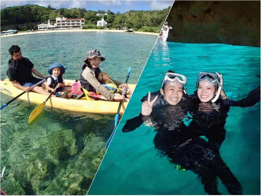 【沖縄恩納村/半日】1組貸切!3歳から楽しめるカヤック&青の洞窟シュノーケリングツアー《当日予約OK》子連れ旅行に大人気(No.36)