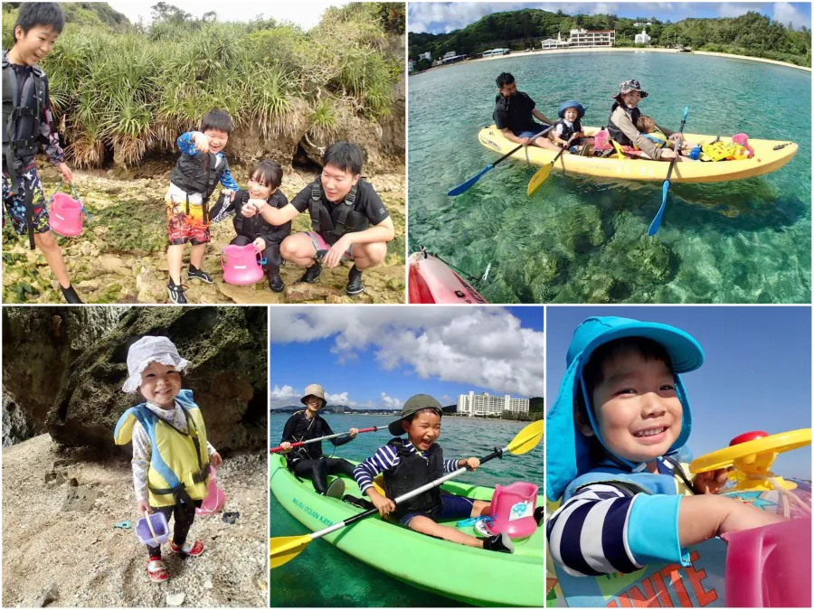 【沖縄本島・恩納村/1組貸切】当日予約OK!1歳から参加可能☆断崖絶壁シーカヤック&サンゴ礁探検と貝殻拾いツアー《オリジナルアクセサリープレゼント》(No.89)
