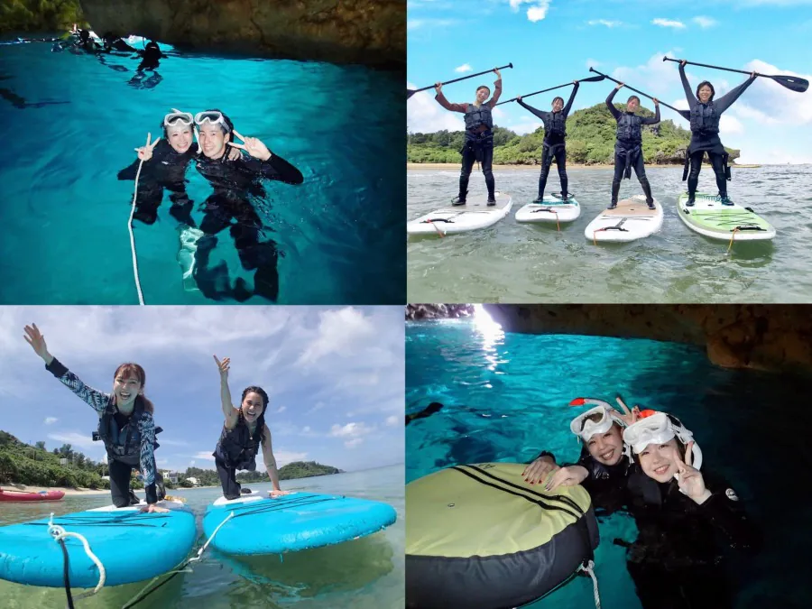 【沖縄恩納村/約3時間】1組貸切で贅沢体験★青の洞窟シュノーケリング&SUPクルージングツアー《当日予約OK/シャワー&更衣室完備》(No.93)