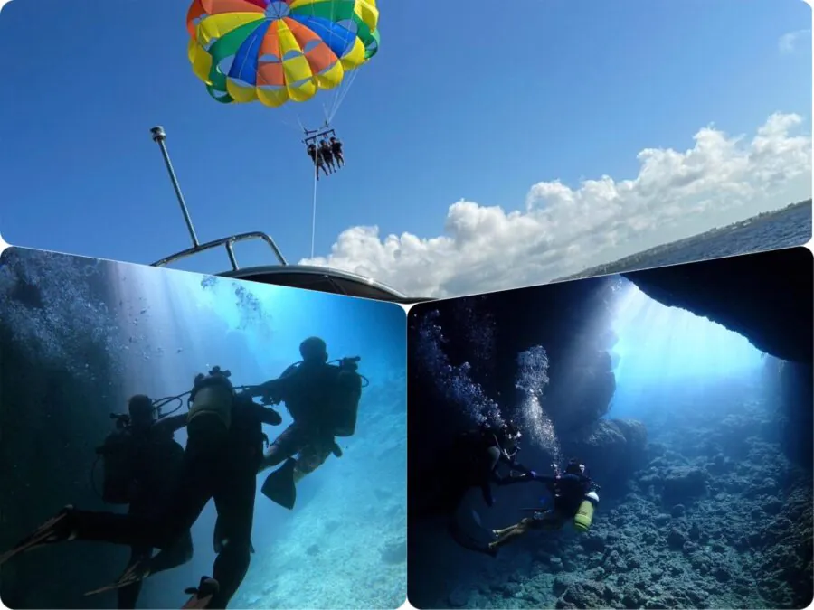 ★秋の特別SALE【沖縄恩納村/半日】毎日5組限定!青の洞窟体験ダイビング&絶景パラセーリング★《GoPro水中写真》専用ボート&専属水中ガイドで安心サポート(No.47)