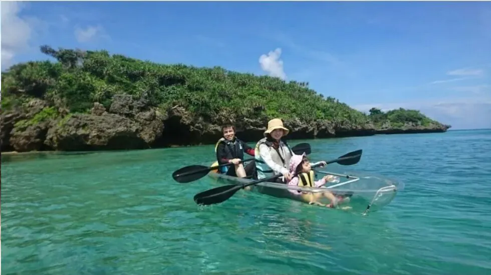 【沖縄・恩納村】2歳から参加可能★スケルトンカヤックで行く!無人島(やどかり島)上陸ツアー《写真データ無料プレゼント》4日前までキャンセル料無料(No.128)